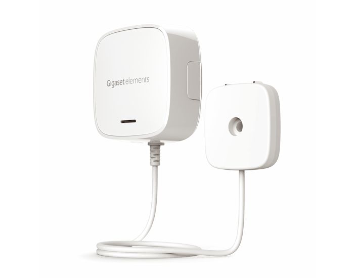 Kompakt und denkbar einfach zu installieren ist der Gigaset elements water, der Ihnen bei einem drohenden Schaden durch auslaufendes Wasser sofort eine Warnung auf das Smartphone schickt. So lassen Sie Ihre Geräte, wie Waschmaschine oder Spülmaschine, nie mehr unbewacht arbeiten und können im Alarmfall sofort den Haupthahn zudrehen. Aber auch gegen schleichenden Schimmel sind Sie mit dem elements water schon im Voraus abgesichert, denn das System überwacht auch die Raumtemperatur und die Luftfeuchtigkeit.