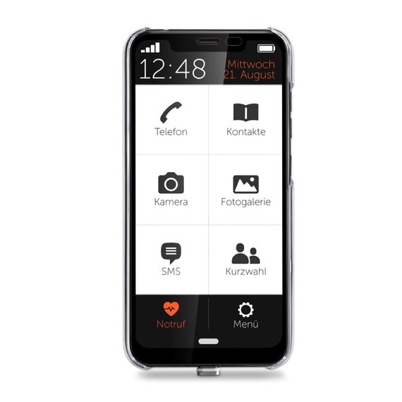 Oubliez les souvent trop nombreuses manipulations nécessaires à la recherche de la bonne application sur un smartphone classique ! Sur l'écran de démarrage du GS195LS, vous trouverez toujours exactement l'application dont vous avez besoin en un rien de temps. Une interface utilisateur basée sur Android™ - spécialement développée pour les seniors - apparaît immédiatement après le déverrouillage de l'appareil et affiche les applications les plus fréquemment utilisées sous la forme de grands symboles ultra lisibles. Jusqu'à huit autres applications peuvent être affichées sur un deuxième écran. Cela facilite les opérations, même lorsque vous êtes en déplacement.